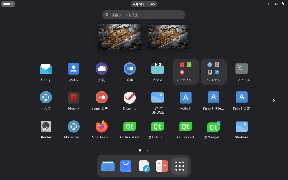 端末・ターミナル を起動し、日本語フォントをインストールします。fontx/noto-cjk または fonts/vlgothic が使用できます。