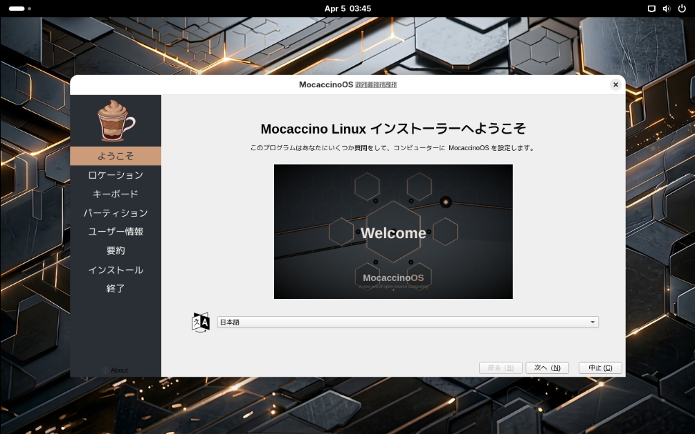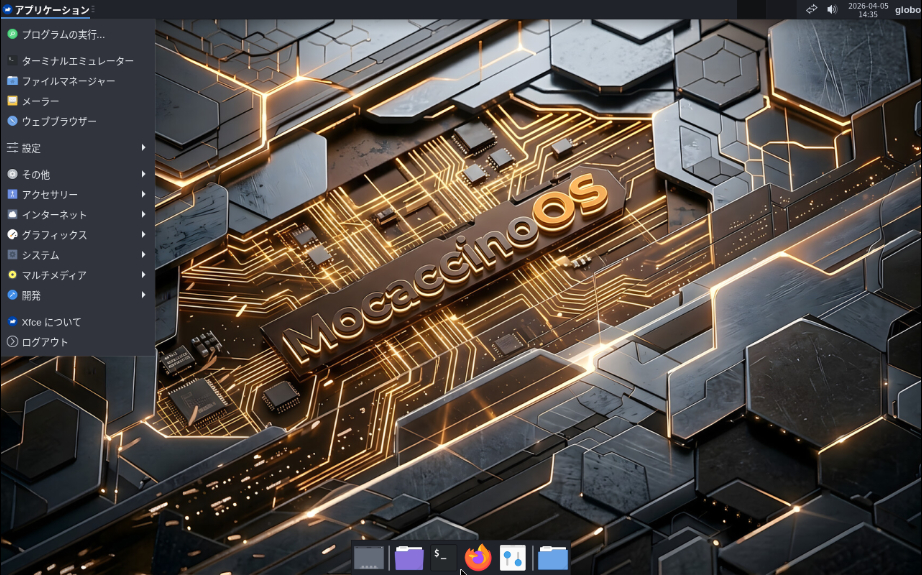 ログアウトまたは MocaccinoOS を再起動し、ログインしなおして、