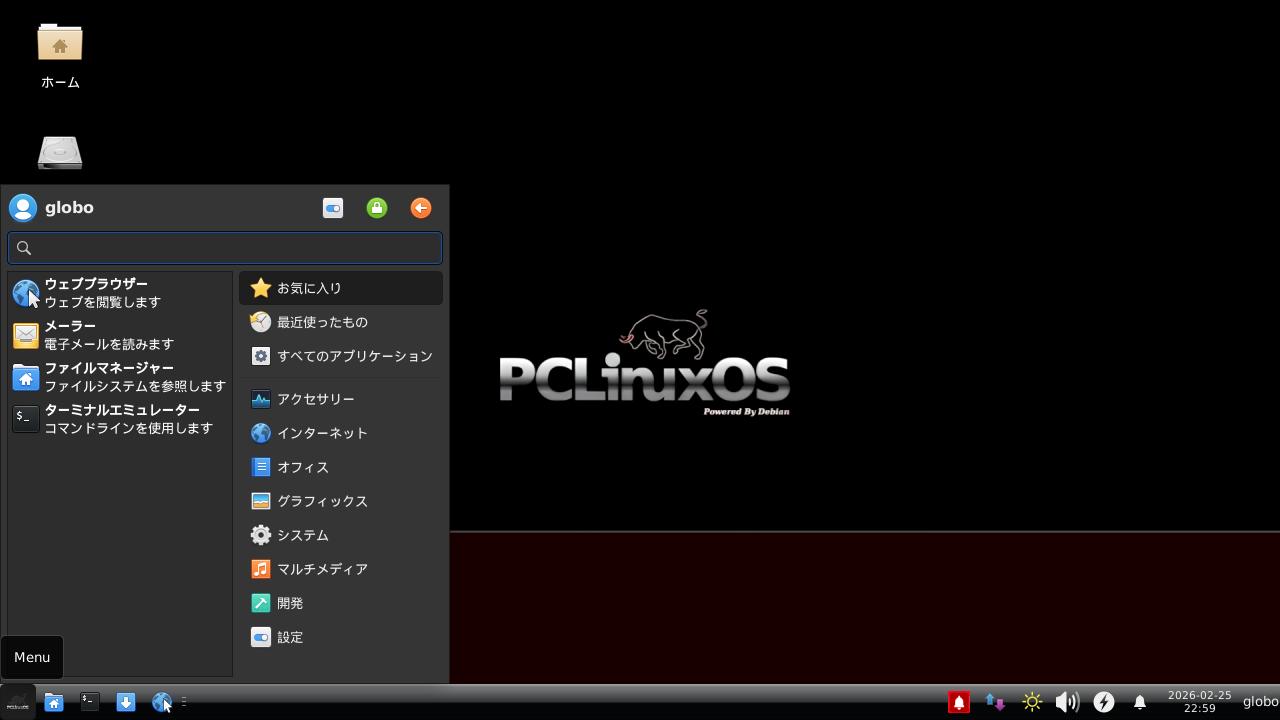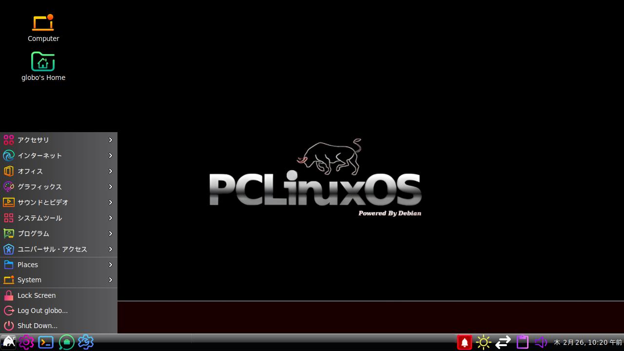 PCLinuxOS Debian Edition を再起動して下さい。