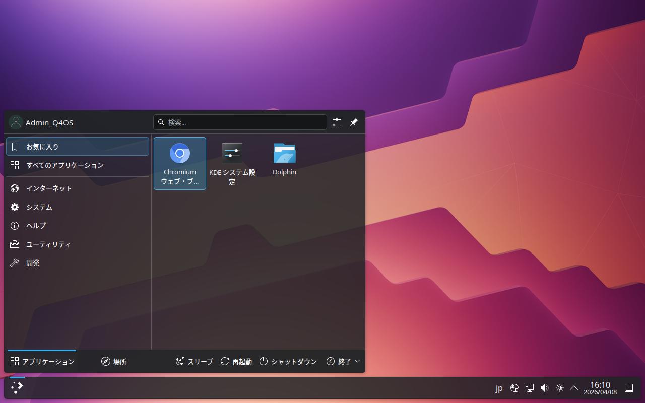 一旦ログアウトまたは Q4OS を再起動し、再度ログインして、