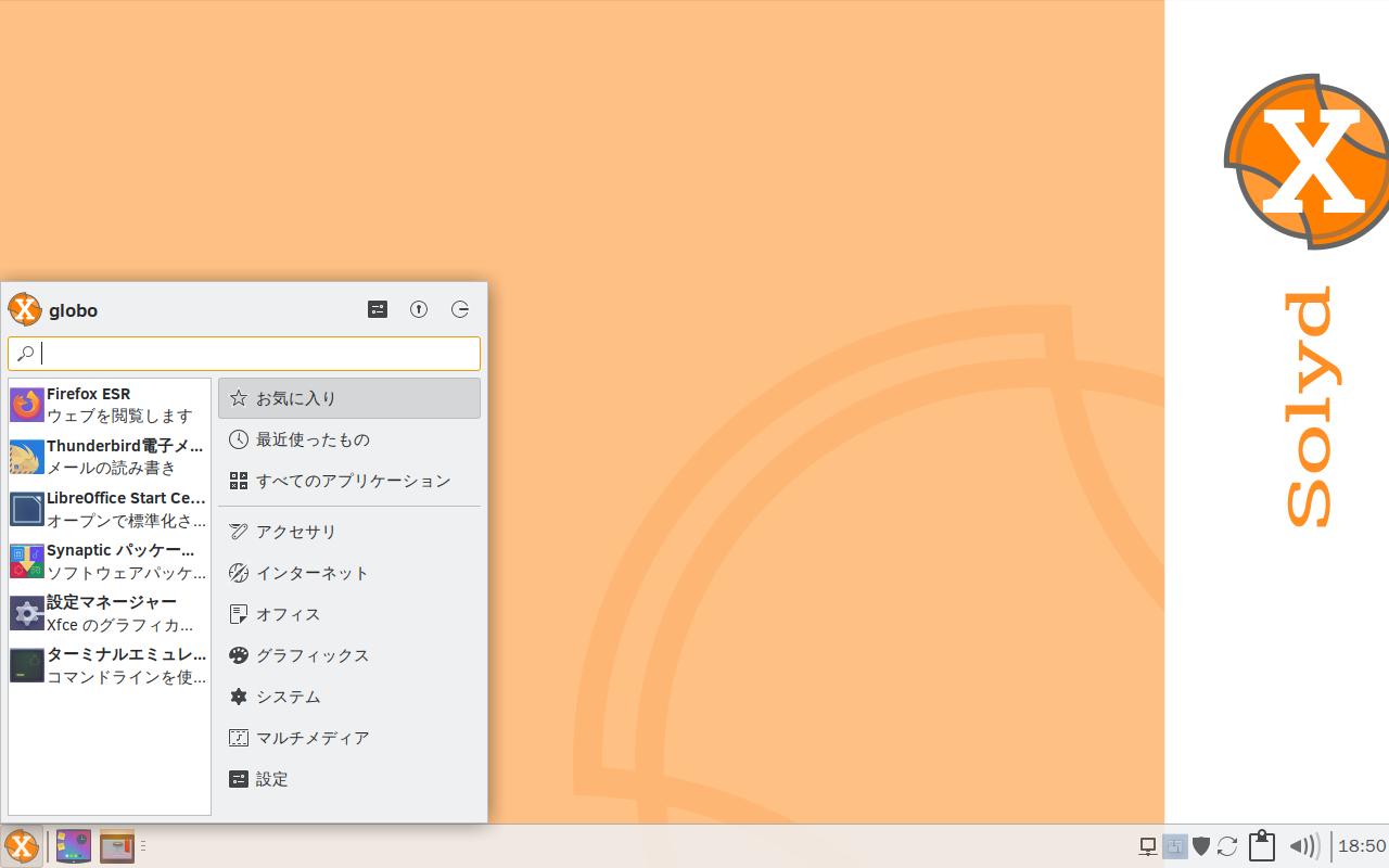 ログアウト → ログイン 、または SolydX・SolydK を再起動して下さい。